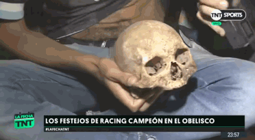 腾讯体育4月2日讯 日前,阿超联赛第24轮,竞技队客场战平蒂格雷,提前1轮夺冠。有一名球迷竟然带着他爷爷的头骨来到现场,见证了冠军时刻,网友们纷纷惊呼,太硬核了!