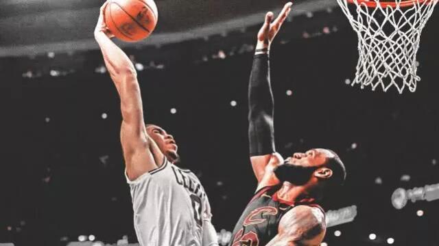 然而上赛季东部决赛抢七大战中发生的一幕,注定会成为凯尔特人球迷时常津津乐道的话题——塔图姆在詹姆斯头上完成隔人扣篮。在那场比赛的第四节中段,塔图姆接到队友的传球后从外线杀到篮下,然后高高飞起在詹姆斯头上完成隔人暴扣。在完成了那次扣篮之后,塔图姆还振臂怒吼,并用胸部撞到了詹姆斯身上。