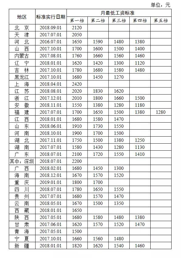 人力资源和社会保障部4日公布了最新的全国各地区月最低工资标准、小时最低工资标准情况(截至2019年3月)。你家的标准是多少,一起来了解!