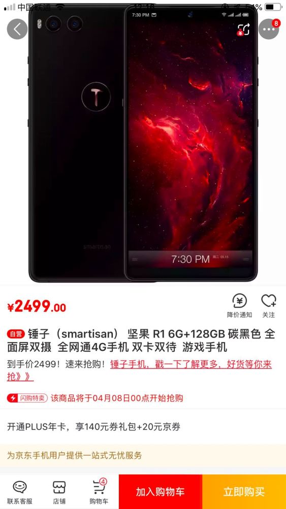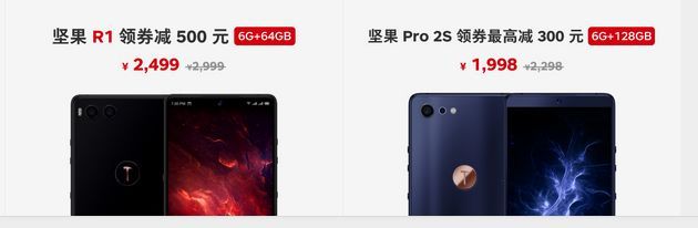 从这些足以看出罗永浩的锤子科技已经陷入了很大危机,而老罗也根本没有想把锤子手机再次搞起来的欲望,据消息他已经转行其他行业了(电子烟?),所以今年基本上是没有坚果手机发布了,从目前官网再次开售锤子手机来看,完全就是降价促销,比如这部旗舰机R1,在官方商店上显示6GB+64GB领券立减500元(不过已经没货了),而在京东自营店上6GB+128GB不到一年降价1500,从从3999降至2499。
