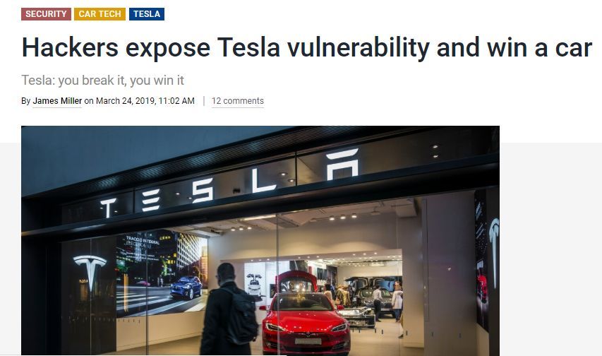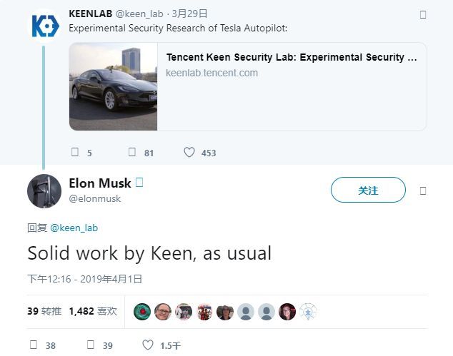 马斯克对科恩实验室特斯拉汽车系统漏洞的推特回应