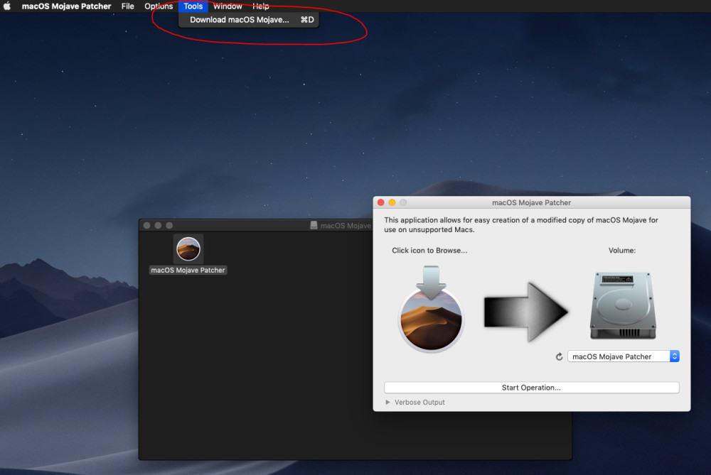 故我只能剑走偏锋,经过google搜索how to reinstall mojave,我发现了一个小软件名为macOS Mojave Patcher。通过Patcher内置的Tools可以下载Mojave。