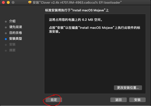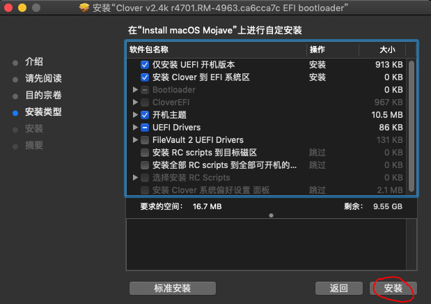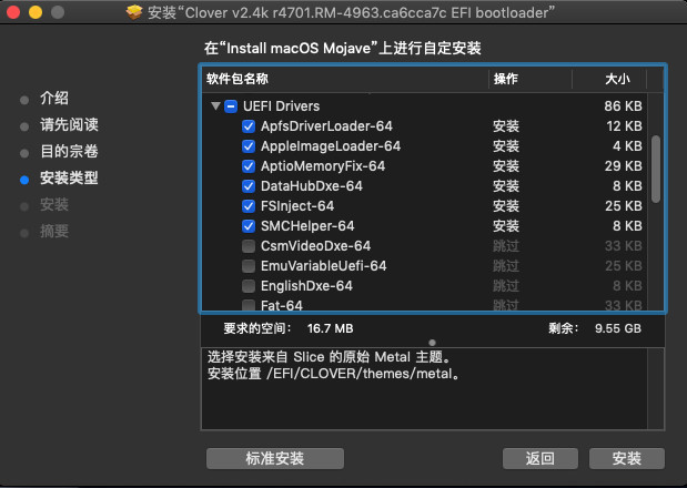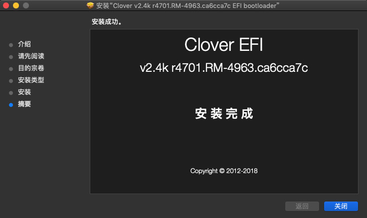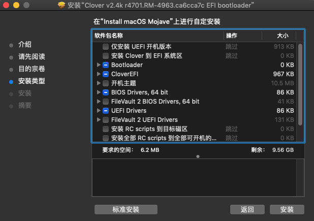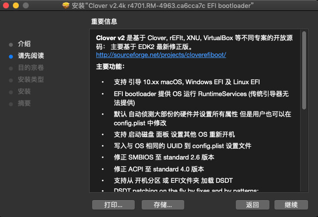 接下来我们需要对U盘的EFI分区安装Clover,这里既可以使用sourceforge上托管的Clover master branch,也可以使用其他人fork的Clover分支,我比较习惯使用RehabMan在Bitbucket上fork的CloverRM版,诸位可自行下载。打开Clover,点击继续,确认许可协议
