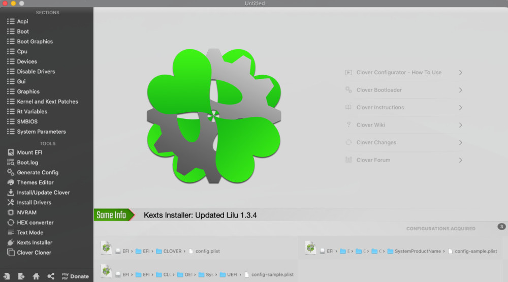 config.plist则是Clover引导最最重要的配置文件,默认安装Clover是空文件,我们需要尽量找已经配置好、配置相近的成品config.plist进行替换。