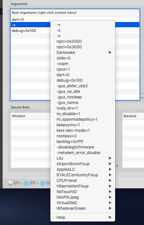 关闭vt-d:但是由于本人讨厌关闭vt-d,所以在Boot Argument中已经添加dart=0,可以不关闭。