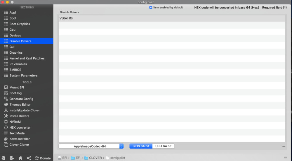 ApfsDriverLoader-64 & AppleImageLoader-64这两个是用来替代macOS原生APFS.efi,在High Sierra之后的版本,苹果公司将磁盘分区从HFS更换为了APFS,早期Clover不带这两个efi,所以需要使用macOS中提取的apfs.efi来引导apfs磁盘,但是原生apfs会出现代码,为了好看和方便,现在的Clover已经自带了apfs引导efi了。这两个驱动必须勾选。