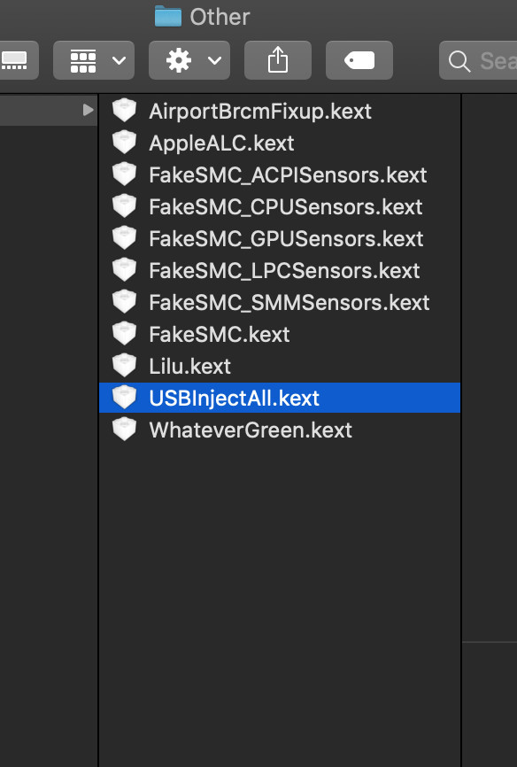 kexts Installer中我们可以非常方便的下载一些必要的Kexts,需要注意,OS Version要选择Other,这样所有的kext都会被下载到Kexts/Other文件夹下。我们这里需要Lilu/WhateverGreen/FakeSMC/USBInjectAll: