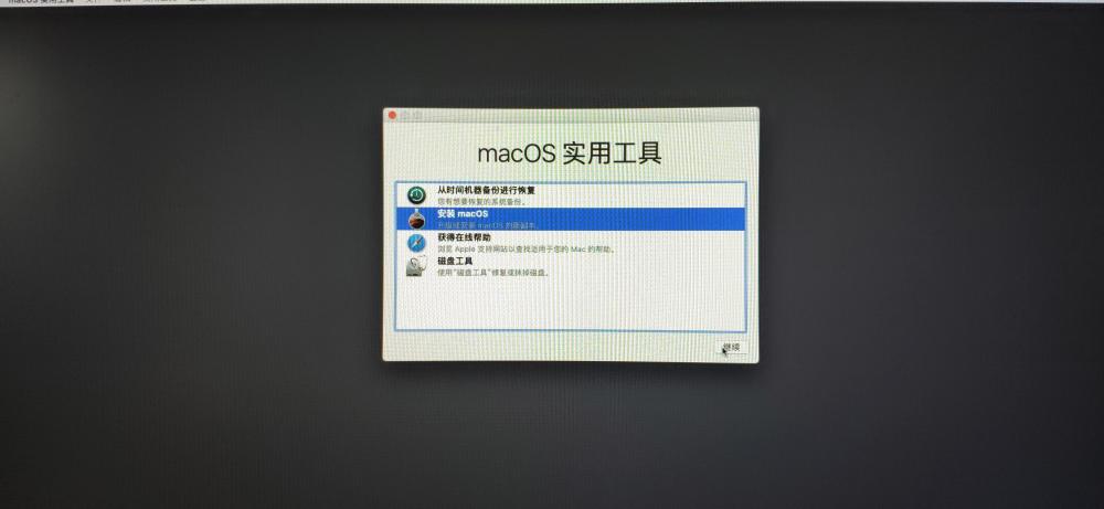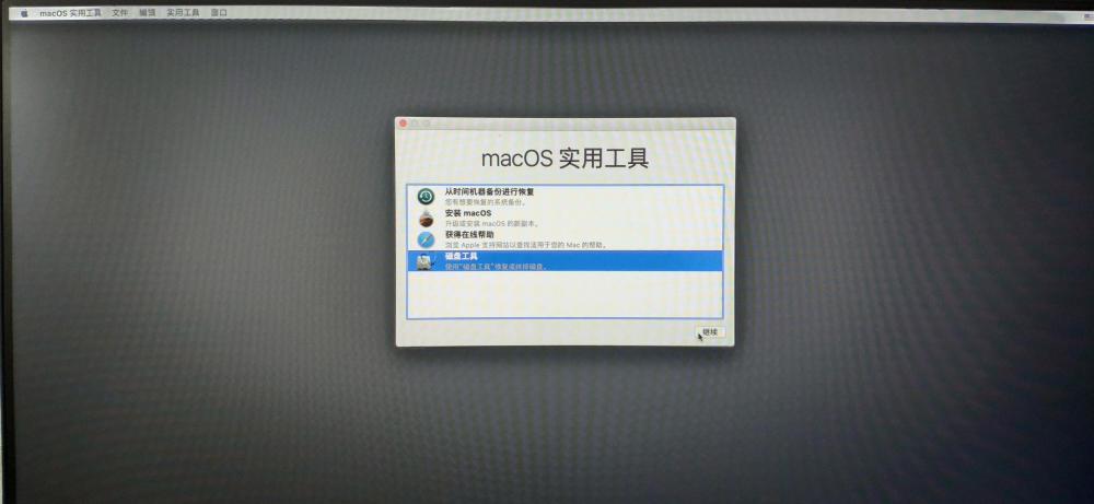 在macOS实用工具这里首先选择磁盘工具,进行进一步的配置。