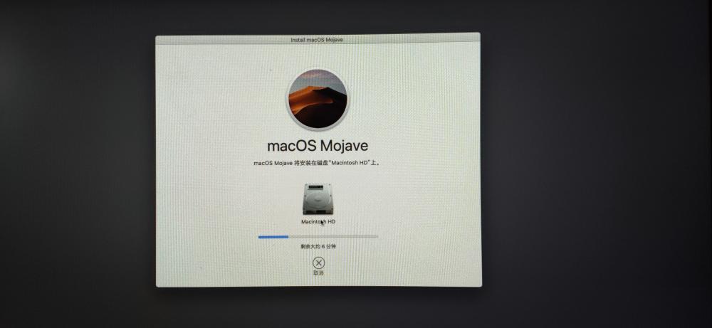 第二次重启后,就会开始将复制到Macintosh HD磁盘的系统文件解压展开并进行一系列的自动化设置。结束后仍然是重启。