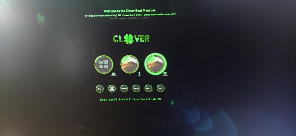 结束后会重启电脑,仍然按F11选择U盘EFI启动(因为这个时候我们只有U盘里有Clover Bootloader可以引导macOS),选择右下角是磁盘形状的macOS图标,并且名称应该为Install from Macintosh HD。这次引导会相对快一些,引导结束一会儿就会重启