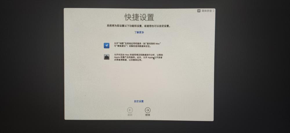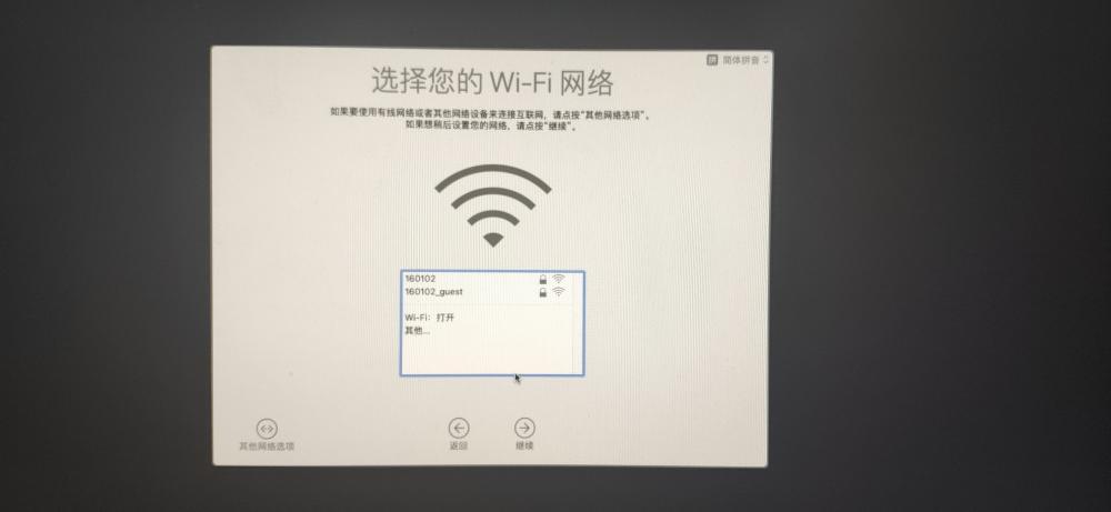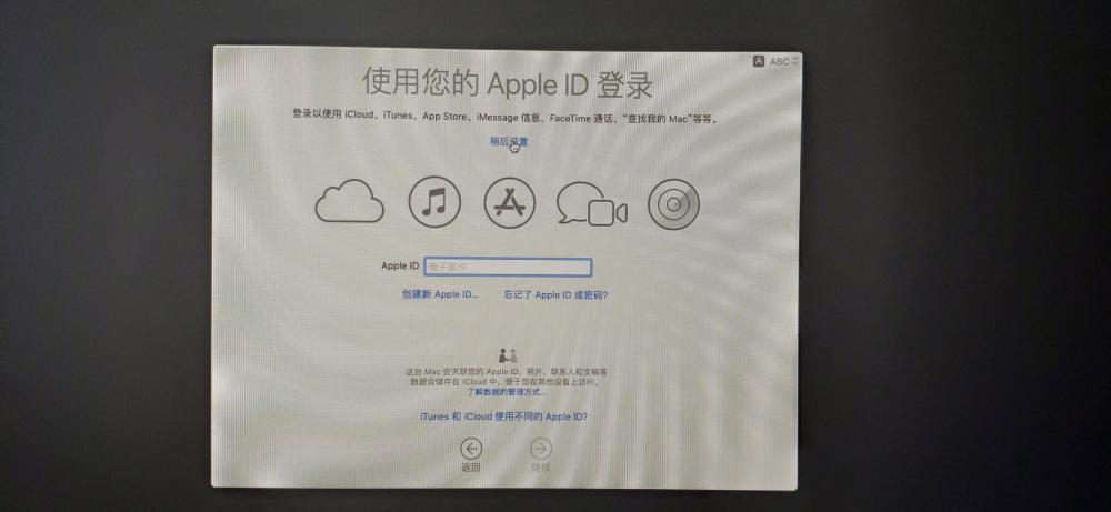 在登录Apple ID界面,个人建议无论你是否能上网,都选择稍后设置,因为很多朋友连SMBIOS的三码都没搞懂,贸然登录Apple ID是可能被锁账户的,到时候你哭都来不及。