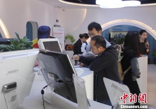 资料图:参观者体验电子科技产品。冯抒敏 摄
