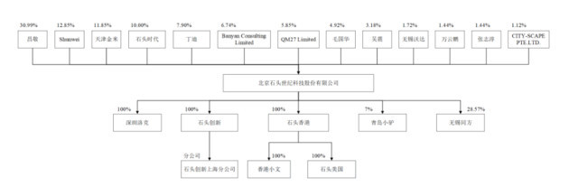 目前,小米相关的投资机构顺为、天津金米投资合伙企业(有限合伙)(以下简称天津金米),分别持有石头科技12.85%、11.85%的股份,为第二、第三大股东。