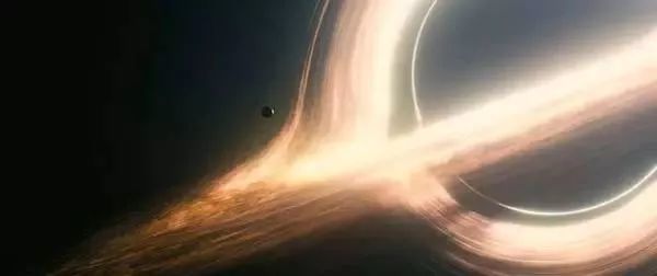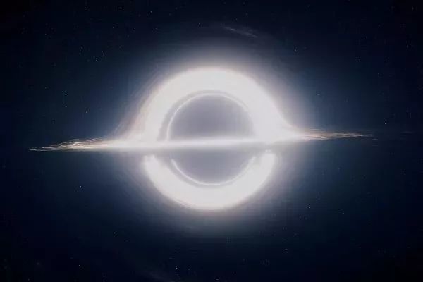 电影《星际穿越》中的黑洞,周围的亮环是由气体构成的吸积盘