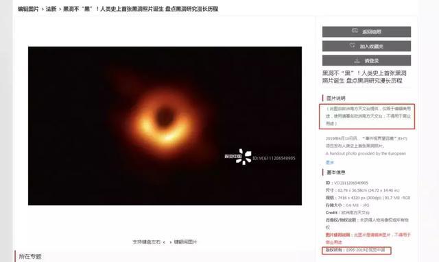 那么有需求的企业媒体该怎样在安全的范围内使用这张图片呢?因法律、法规尚未对该种情况作出规制,张新年建议公众仍要遵守《著作权法》的规定,在从视觉中国网站上下载图片时,按照相关的版权声明进行处理。如需将黑洞照片用于商业宣传则可以考虑于EHT或ESO官网上进行下载。
