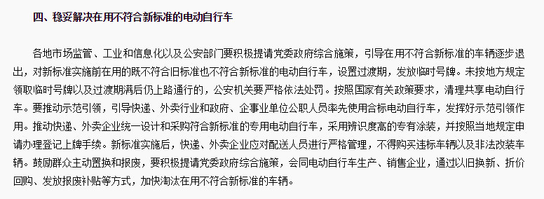 所以,戏肉来了!根据上文的《意见》,电动自行车需要符合去年制定的“新国标”!