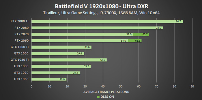 例如,在战地5 1080P画质下,开启光线追踪反射效果后,RTX 2060的平均帧率达到了54帧,流畅度已经相当不错了。而GTX 10系列阵营中,由于光追核心的缺失,即使是1080 Ti这样的顶级显卡,也只能达到了42.1帧的成绩。而GTX 1060,平均帧数更是只有19.6帧。