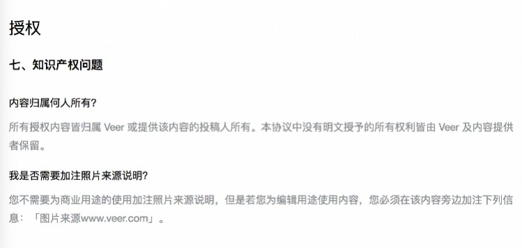 VEER还称“100%正版保障” ,但是亦表示,“VEER 不会也无法审核上传到本网站的所有通信或内容,并且对此类通信或内容的内容概不负责。”
