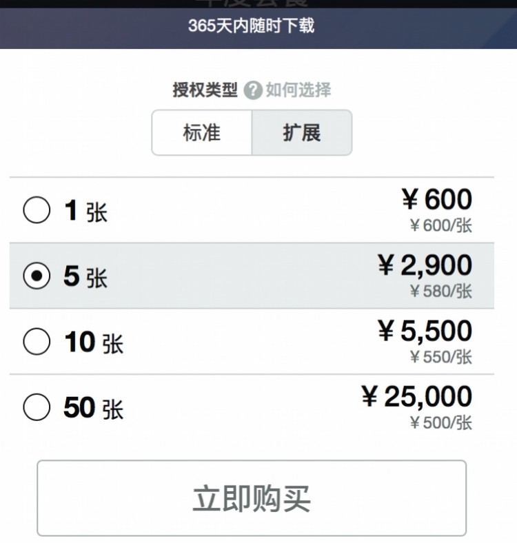 年套餐扩展授权照片2.5万可下载50张