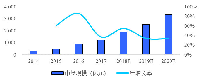2014年来,我国视频行业市场规模增长率保持在30%以上,预计到2020年,视频行业市场规模将高达3300亿元。