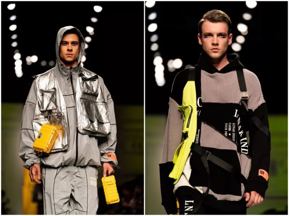 多层次解构配合大胆配色,凸显未来科技感的同时,又不失电子复古韵味,亦体现街装和运动装元素的融会贯通。