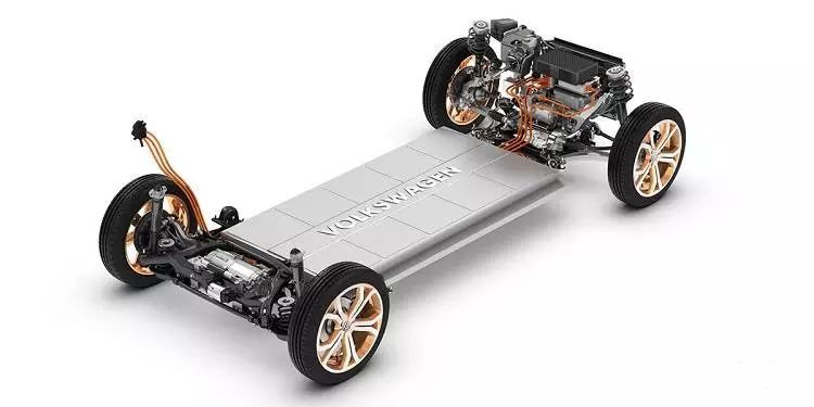 从大众的MEB纯电动平台可以看到巨大的电池包增加了很大的车重