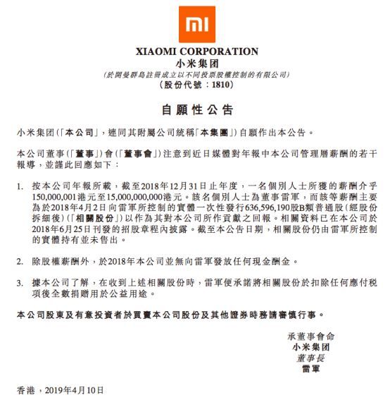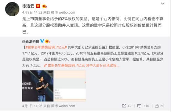 眼看着网络舆论即将失控,4月10日一大早,小米集团急忙发布公告,说明了百亿年薪的来龙去脉。