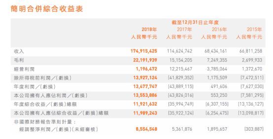 根据2018年年报,在全球手机智能终端整体下滑的环境的大背景下,小米依然保持着高速增长势头。 2018年实现营收1749亿元,同比增53%,经调整后净利润人民币86亿元,同比增60%,超过市场预期。