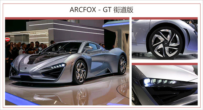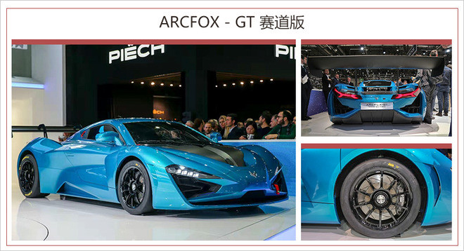 ARCFOX-GT是由北汽集团位于西班牙的高性能车研发中心开发,基于Formule-E赛车底盘打造了一体化碳纤维车身结构,更轻更坚固,同时新车采用全碳+蜂窝铝架构的电池框架,重量更轻,强度更高。其搭载了6台驱动电机、高性能液冷电池,新车的百公里加速时间2.59s。