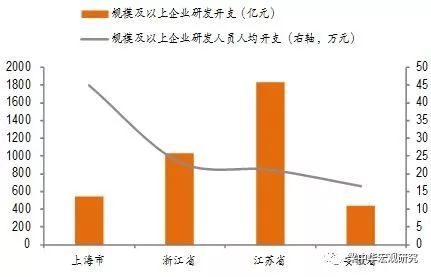 图表:三省一市规模以上工业企业研发投入