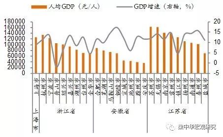 图表:长三角人均GDP与GDP增速