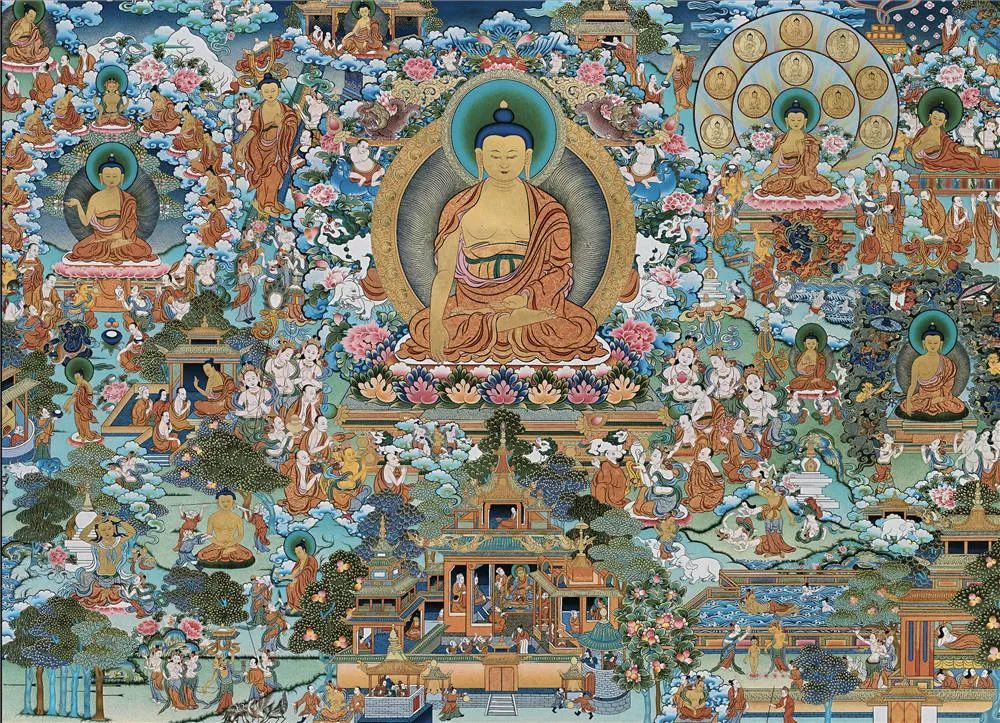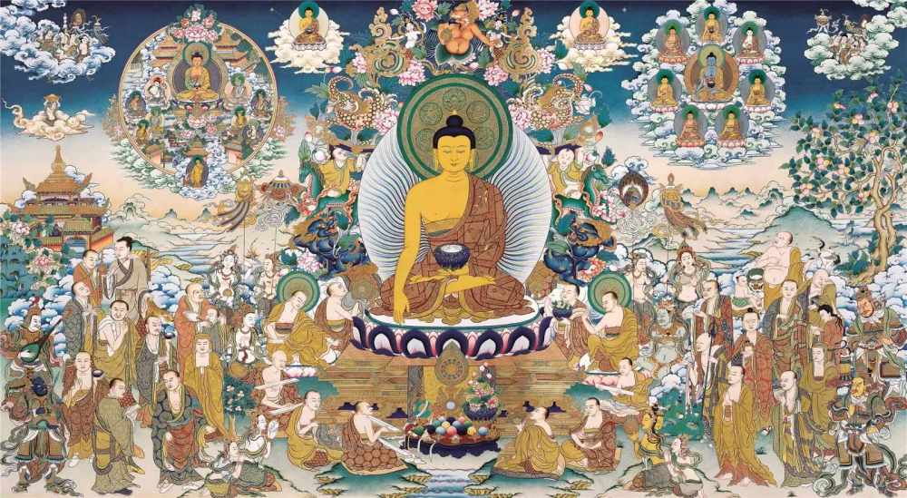 此次“娘本唐卡艺术展”甄选了他70幅不同时期有代表性的作品。其代表作品有释迦牟尼佛生平唐卡、有彩塘和黑金两种风格色彩的佛陀生平故事画;释迦牟尼佛与文殊菩萨、弥勒菩萨唐卡,红唐底色;黑金三世佛;黑金五方佛与五百罗汉唐卡;阿弥陀佛、度母、护法神、十八罗汉、祖师大德等系列画作品。