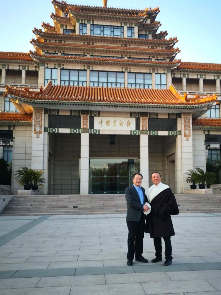 大家下午吉祥!非常荣幸参加娘本大师的唐卡艺术展,借此机会,首先感谢娘本大师对我的邀请,其次感谢中国美术馆举办了一次高水平的热贡唐卡艺术展,让国内外观众在首都北京感受认识和了解雪域高原藏民族的传统文化和藏传佛教艺术精品,分享了一次汉藏艺术交流的文化盛宴。