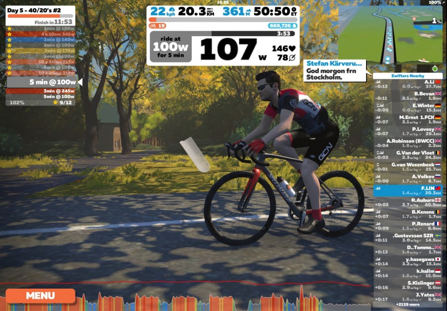 玩家林志祥表示,自己每次登入遊戲大概都會騎20至30公里左右,平均每週上線5次。對他而言,能夠跨越天氣限制,又可以保持訓練狀態,是最主要的使用因素。他認為,遊戲的豐富性與多元性可以讓室內練習更專注,但目前軟體無法透過語音聊天,互動性略有不足,車友之間也比較難互相學習。