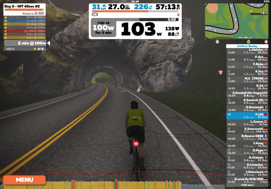 更特別的地方在於,Zwift不只用3D技術「復刻」了真實場景,更打造了專屬的虛擬世界——烏托邦(Watopia),利用天氣與環境變化,如鵝卵石、叢林、積雪路段等,創造不同的騎乘體驗。玩家還可以自行選擇開團,或是參與由官方提供的訓練課程、線上錦標賽。