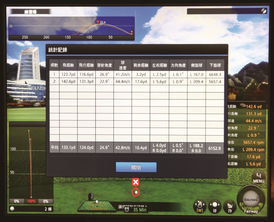 球友只要站在綠色的塑膠草地上,瞄準小白球揮杆,除了感受不到天氣、風力外,幾乎擁有跟戶外打標準十八洞的相同體驗。高爾夫球的實際飛行距離、力道會在球杆接觸球體表面時,被高速攝影機記錄下來,由演算法化成軌跡,搭配不同虛擬畫面,呈現在螢幕中。每一次的揮杆動作都會被機台上的攝影機記錄下來,能在App中即時回看;每一球的速度、旋轉、距離、上果嶺率、推杆率,則會透過數據化方式在螢幕機台上顯示。