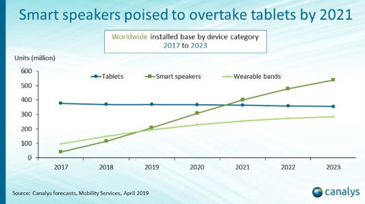 此外,该公司还预计,到2021年,智能音箱的销量将超过平板电脑,达到6亿台。