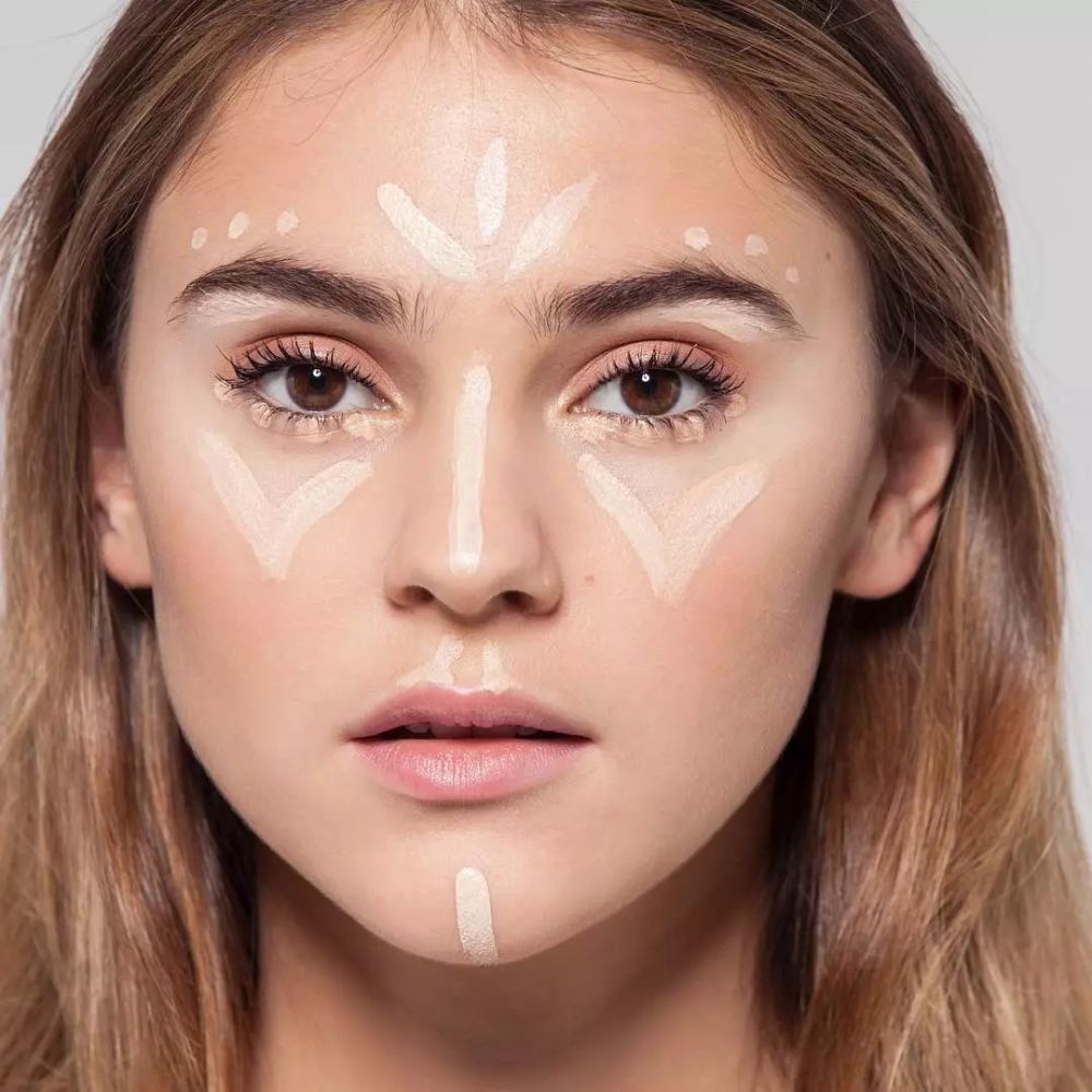 粉状的高光太出挑不如用白1色的粉底更能和肌肤融为一体,且这种的更隐蔽,能够展现出“我的脸天生就这么立体”的效果。就算你玩命儿仔细看,也不一定能看出我打了高光,且还不会破坏丝绒底妆的质感。