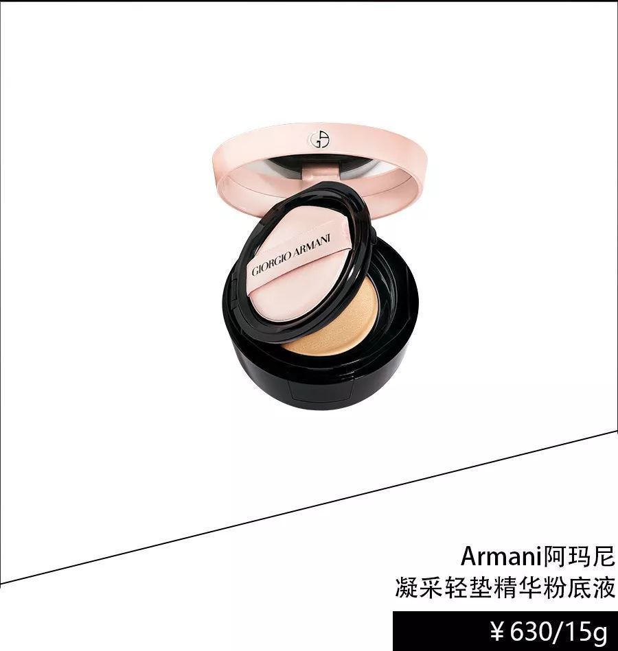 全新阿玛尼粉气垫让你指尖轻触间拥有透亮发光底妆。融萃微白珍珠因子的细微粉末,在提亮肌肤的同时,更带来透亮发光的底妆质感。在配方中加入新发现的保湿因子,能锁住水分,令肌肤水润光泽。为了让精致底妆不干燥卡纹,气垫中有多重防护因子来柔滑润泽肌肤,除此之外的维他命CG,能持续提亮肤色,让你的肌肤由内而外透出光采。