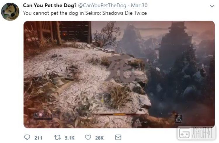 “你不能在《只狼》中撸狗(狼)。”因为你只会被它们杀