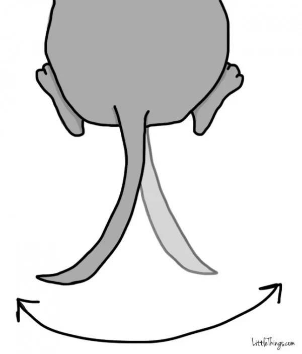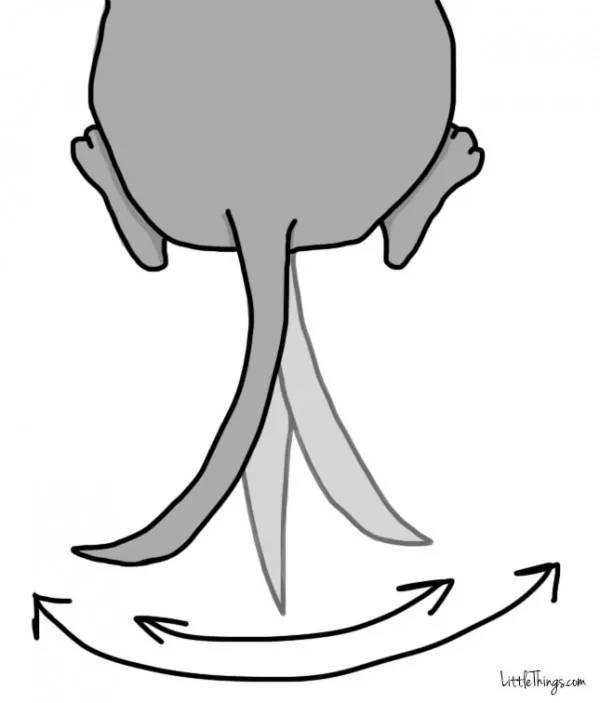 当尾巴处于这个位置并且来回摆动时