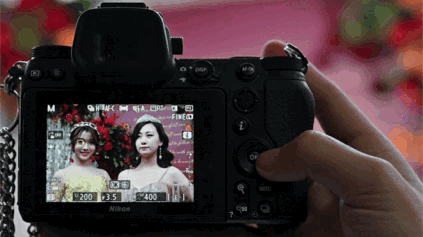 第二,在做了单人测试后,还进行了双人眼控跟踪对焦模式切换,眼控追焦速度与单人测试一样可以快速合焦,手动选择不同眼睛,切换过程顺畅快速。通过Z 7多重选择器(拨盘),可以选择不同模特的左眼或右眼。下面gif图很好地的演示了测试过程。