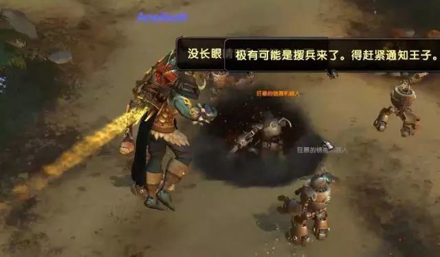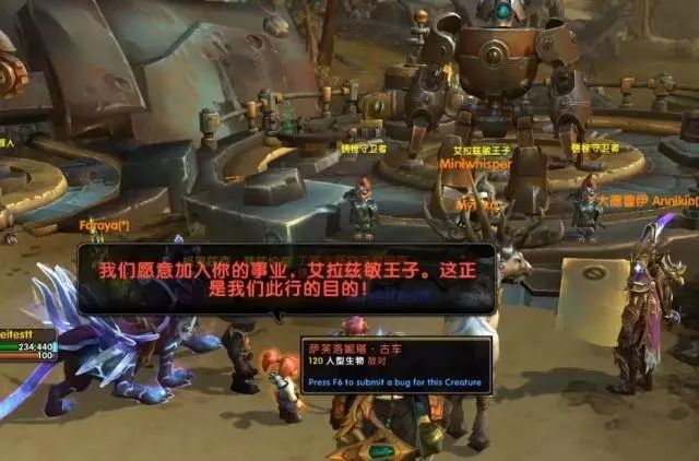 王子现在很窘迫缺人,联盟和部落来了,正好可以帮忙。我们骑上了王子的机械坐骑,然后一路了解了大概的情况。