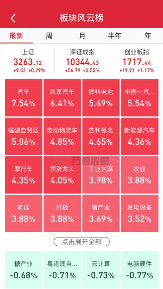 与征求意见稿中内容相关的行业股市板块都出现了较大幅度的上涨。以汽车行业为例,当天,A股汽车板块上涨7.54%,新能源汽车板块上涨4.36%,燃料电池板块上涨5.69%。从个股来看,长城汽车、中通汽车、众泰汽车、一汽夏利、力帆股份、北汽蓝谷、一汽轿车、亚星客车、比亚迪、东风汽车涨停。