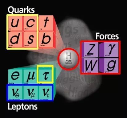 这里面,有些粒子跟我们的日常生活密切相关,比如说,传递电磁相互作用的就是光子;我们每天的日常生活都跟电子打交道。其实,这16种基本粒子之外,还有一个非常奇怪的粒子,就是最中间的希格斯玻色子(Higgs粒子,后用英文表示),它给了所有粒子质量。