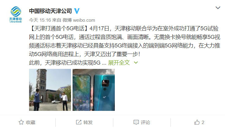 实际上到目前为止,华为的5G手机不止Mate X一款,Mate 20X也将推出5G版本,并且正在进行测试。今天下午,中国移动天津公司宣布打通首个天津地区的移动网络5G电话,而测试用设备正是华为Mate 20X 5G。