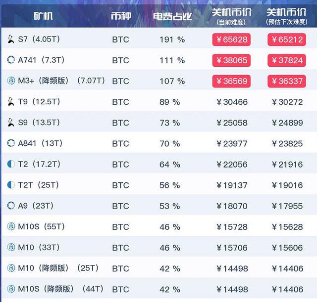 F2pool 最新数据显示,以综合电费0.45元计算,目前S9矿机尚且处盈利状态,目前的币价也远高于S9的关机币价。