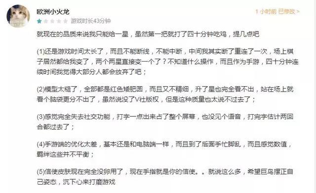 测试首日Taptap玩家一度给《自走棋手游》打出了2.7的低分,不少玩家也留言解释打差评的原因,包括游戏时长太长、角色模型过于粗糙、社交性差、手游的操作过于复杂、无法操作信使等问题。