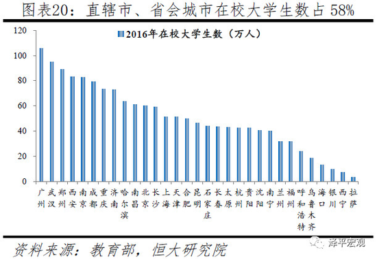 在公共资源方面,一二线城市优质教育、医疗资源密集,城市轨道交通提升城市运行效率。公共资源是产业发展的配套,优质公共资源对人口有着明显吸引力。从教育看,直辖市和省会城市多拥有区域内最优质的中小学和高等教育资源,拥有的985/211大学数合计占全国的81%,拥有的在校大学生数量合计占全国的58%;其中,京津沪的一本升学率位居全国前三。从医疗资源看,一线、二线、三线、四线城市每千人口执业(助理)医师数分别为3.2、3.1、2.2、1.9,并且医疗资源的质量差异巨大,全国最优质的医疗资源主要集中在一二线城市。从城市轨道交通看,根据各城市地铁公司官网及发改委最新批复,至2019年3月全国已通城市轨道交通(不含有轨电车)的城市有35个,加上已批复未开通的城市则增至45个。二线城市中太原、呼和浩特、南通、泉州、烟台尚未开通城市轨道交通,三线城市目前仅温州开通。已批复未开通地铁的城市除太原、呼和浩特、南通3座二线城市外,还包含包头、徐州、常州、绍兴、金华、芜湖、洛阳等7座三线城市。