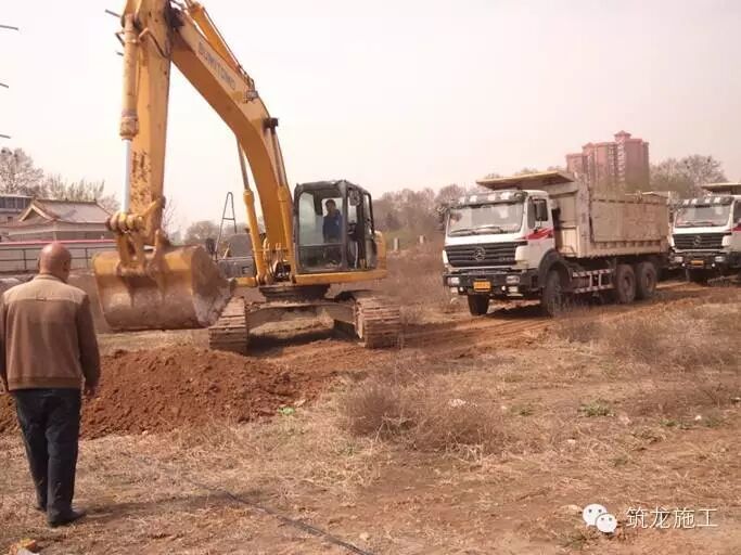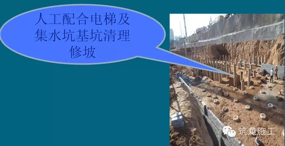 桩间土开挖应注意对桩身的保护,并遵循““开槽支撑,先撑后挖,分层开挖,严禁超挖”的原则,预留20~30CM进行人工清挖,引定位桩检查基坑开挖尺寸、标高是否正确。